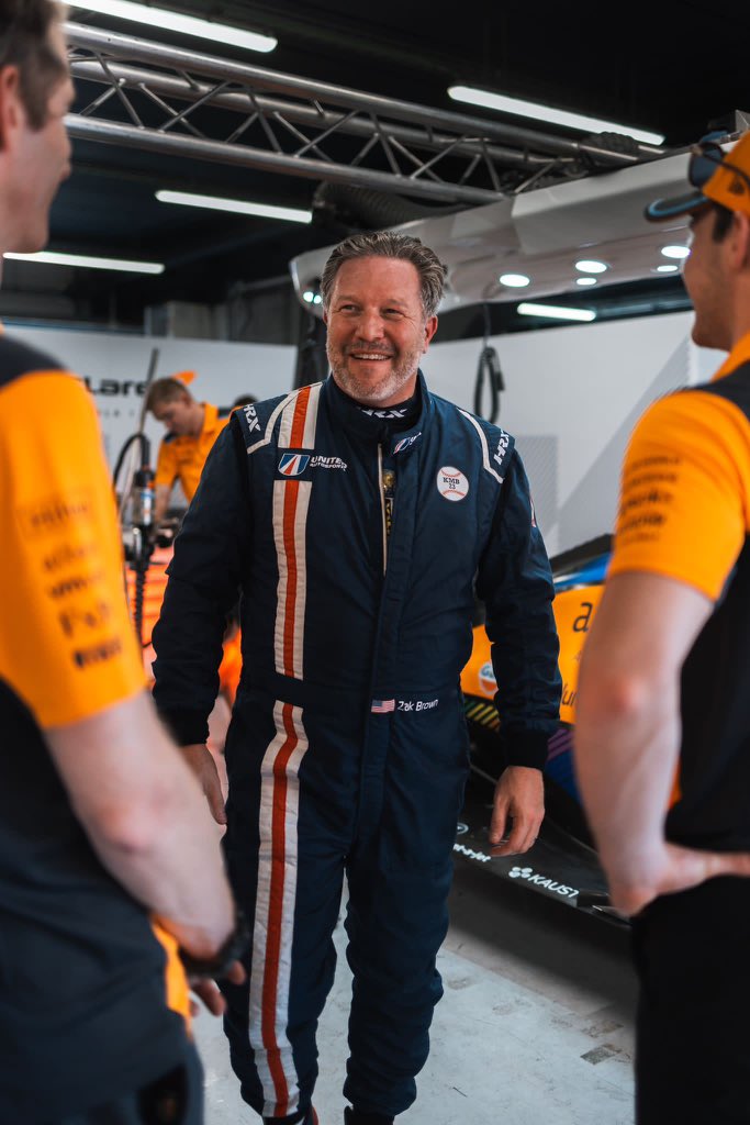 Zak Brown, diretor executivo da McLaren, testou um carro de Fórmula 1 da sua equipa no final de uma sessão que contou com a participação de Ryo Hirakawa e Pato O’Ward em Barcelona.