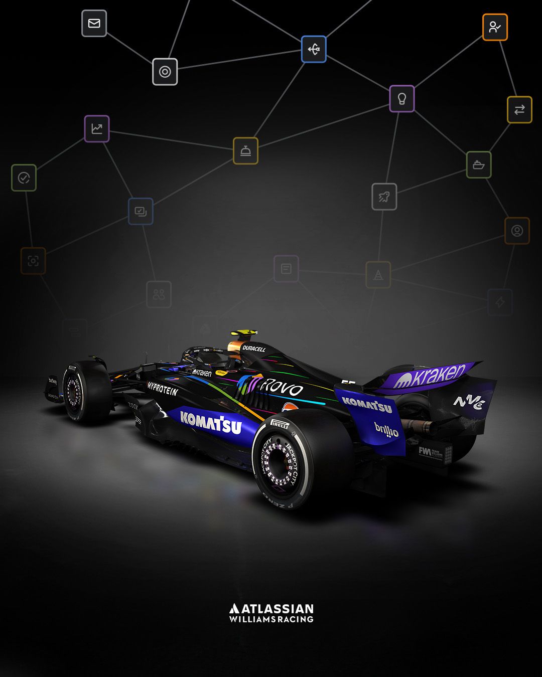“Esta impressionante decoração é a mais recente celebração do nosso trabalho com os parceiros Atlassian, que estão a ajudar a acelerar a nossa transformação tecnológica e a trazer a Williams de volta à vanguarda”, disse James Vowles, diretor de equipa.